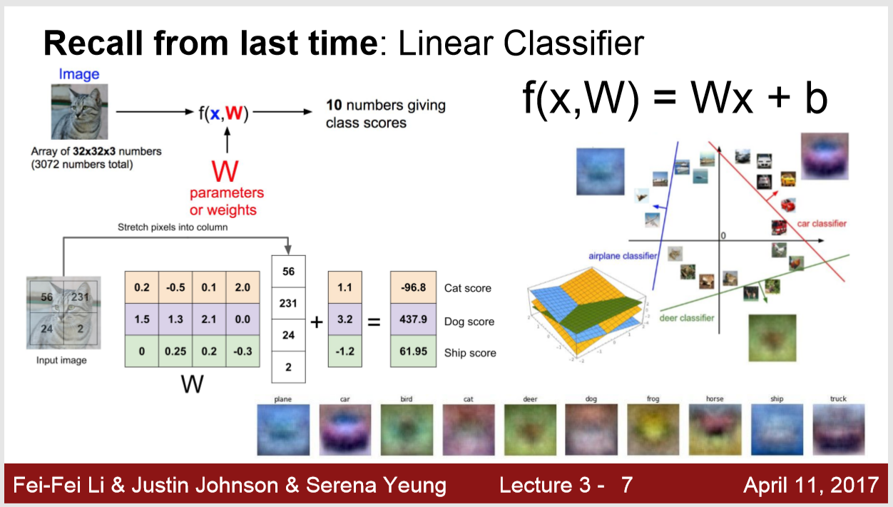 저희는 앞서 linear classifier를 배웠었는데요. 여기서 w값을 준다는 것을 배웠습니다.