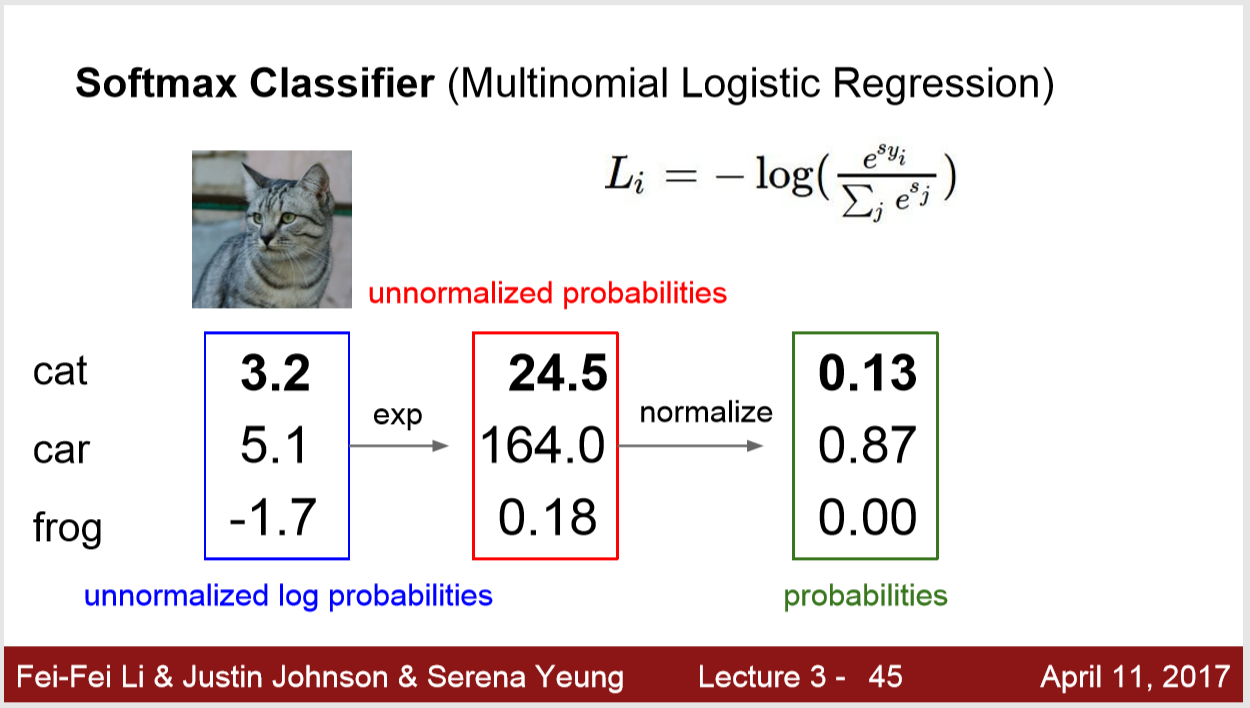 바로 softmax classifier 입니다 ( 소프트맥스 라고 많이들 부른다고 하네요 ! )