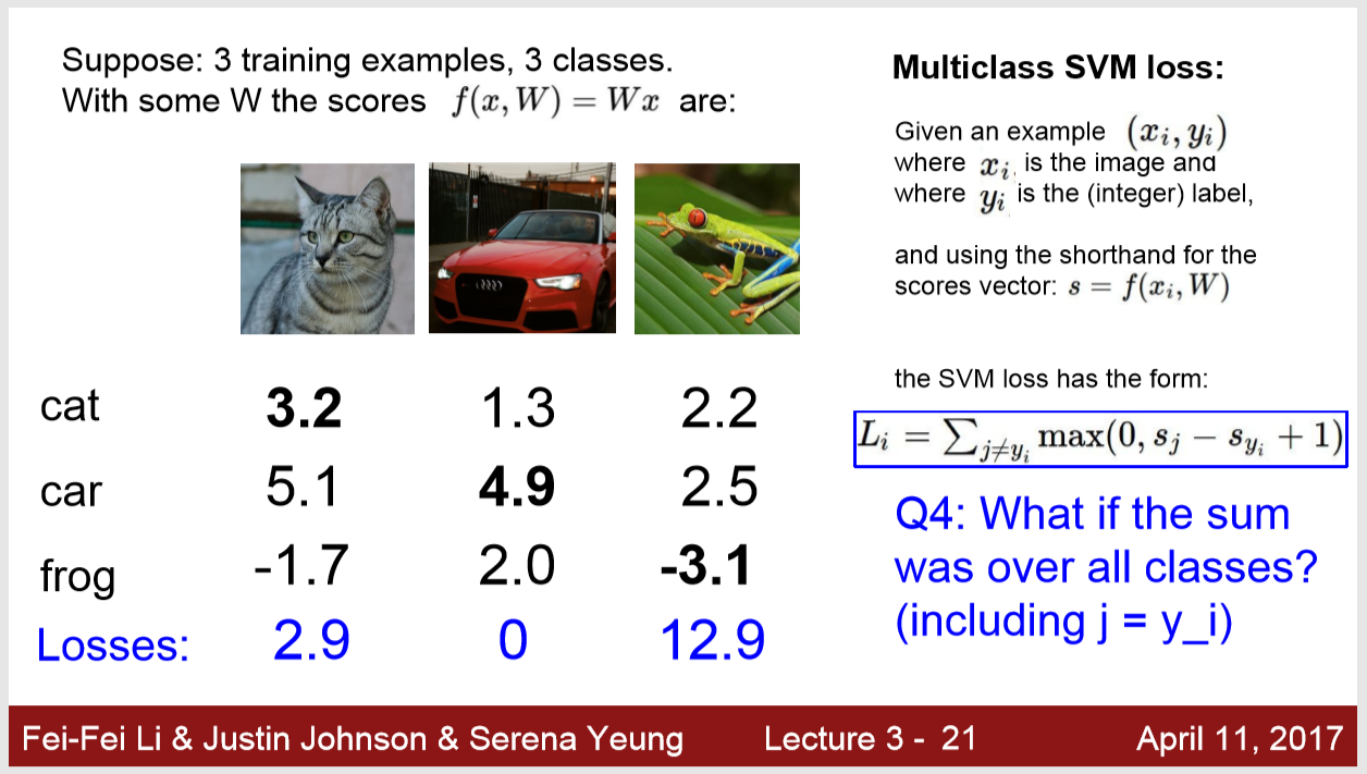 앞서 본 hinge loss에서는 클래스 개수 - 1 ( C - 1 ) 값이었습니다.