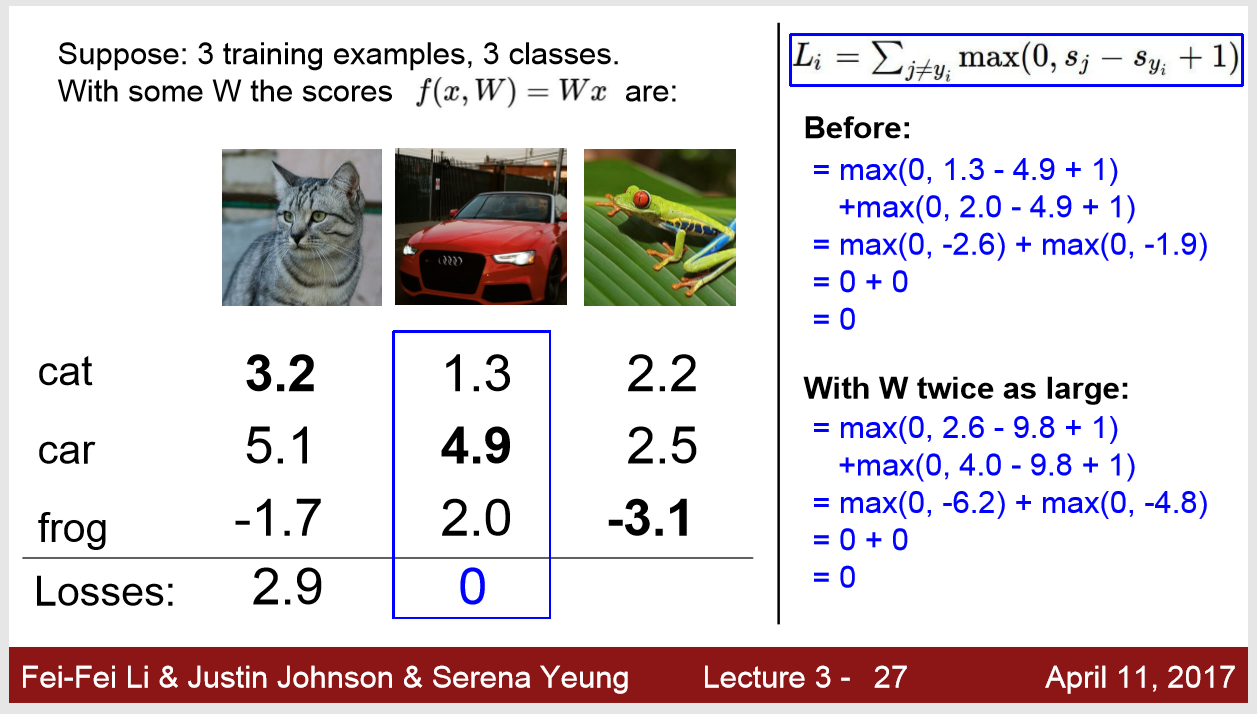 위에서 loss를 구해준 것들을 더 해 보면 2.9 + 0이 되어서 2.9가 됩니다.