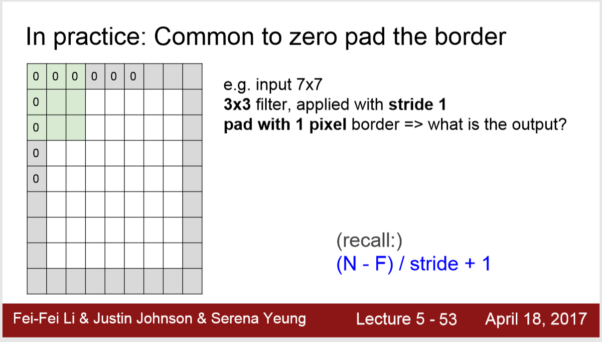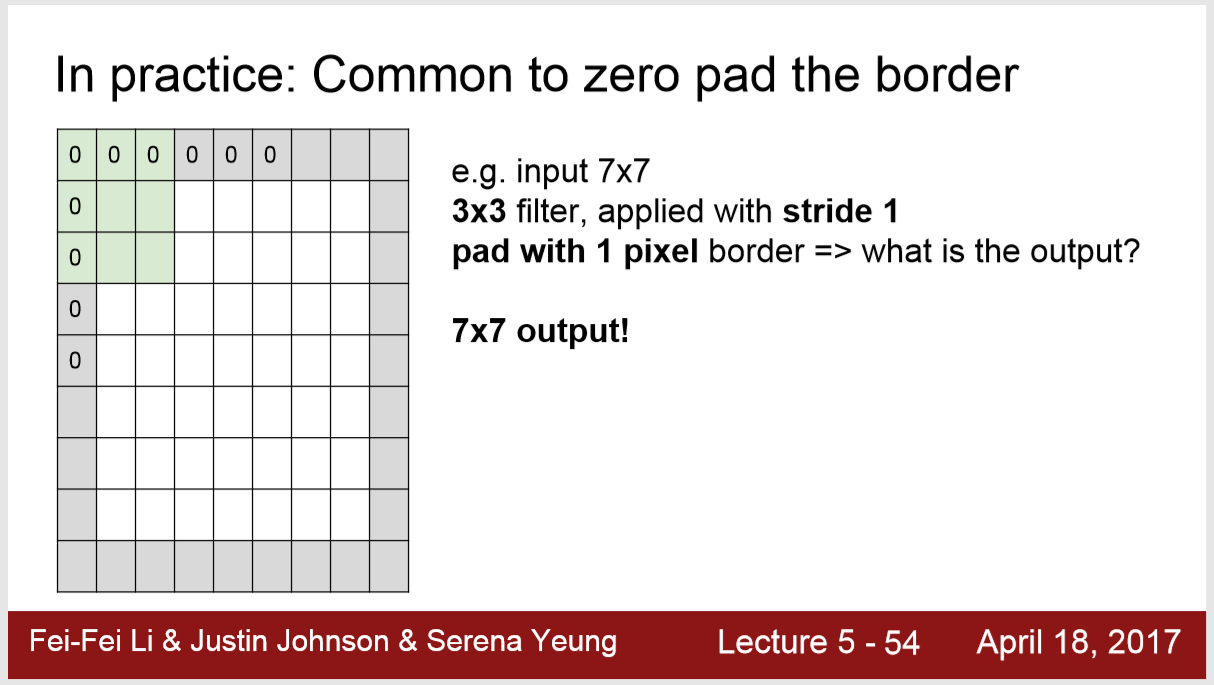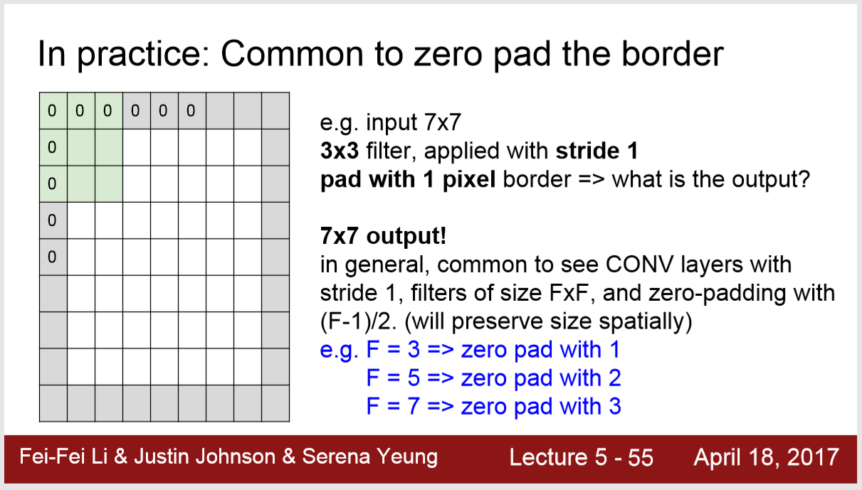 일반적으로 filter가 3이면 zero pad을 1개만하고