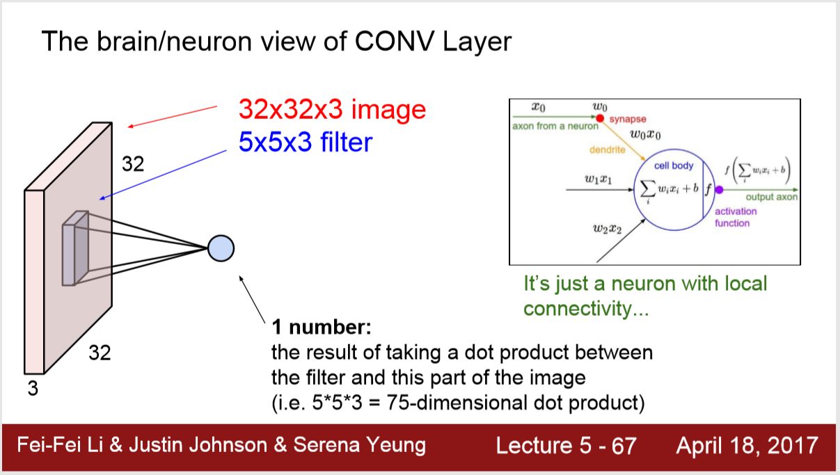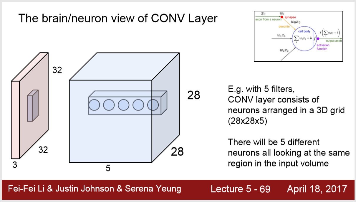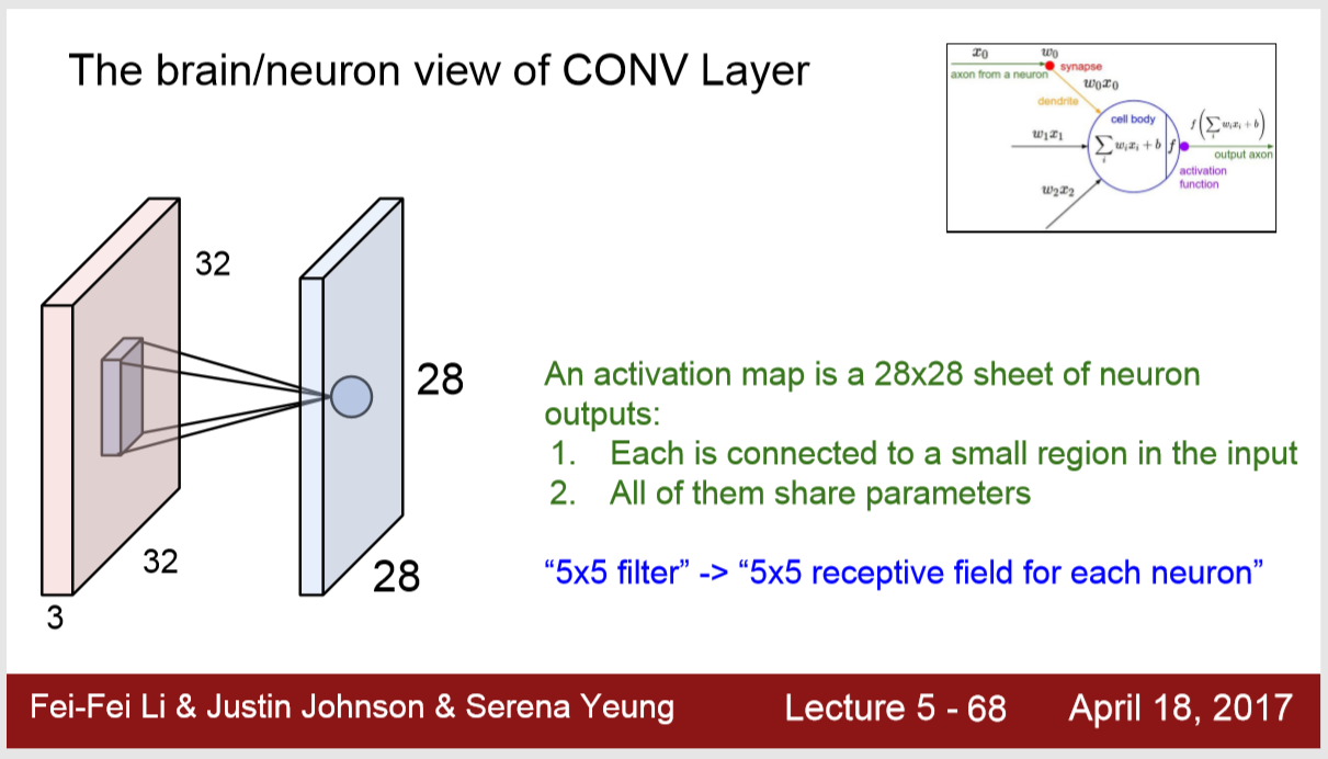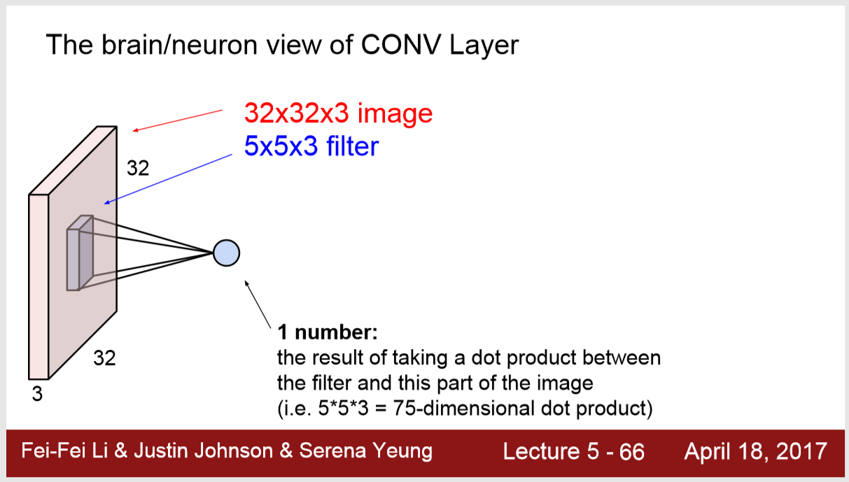 위 그림들을 보면 하나의 filter에 대한 영역에서 1개의 숫자가 나오게 되는데 이건 뉴런에서