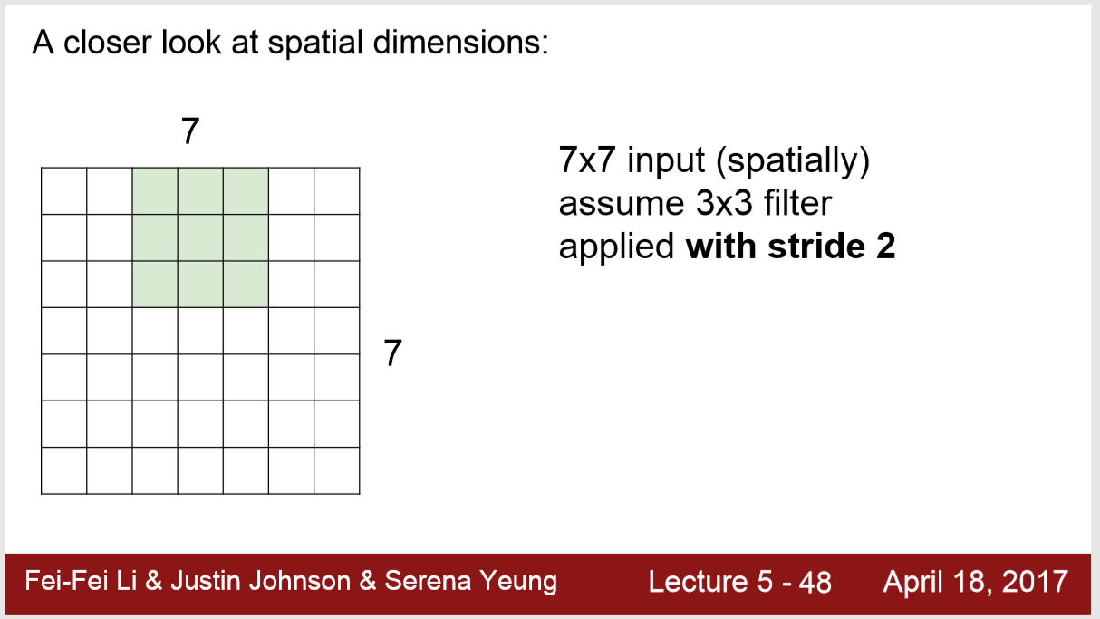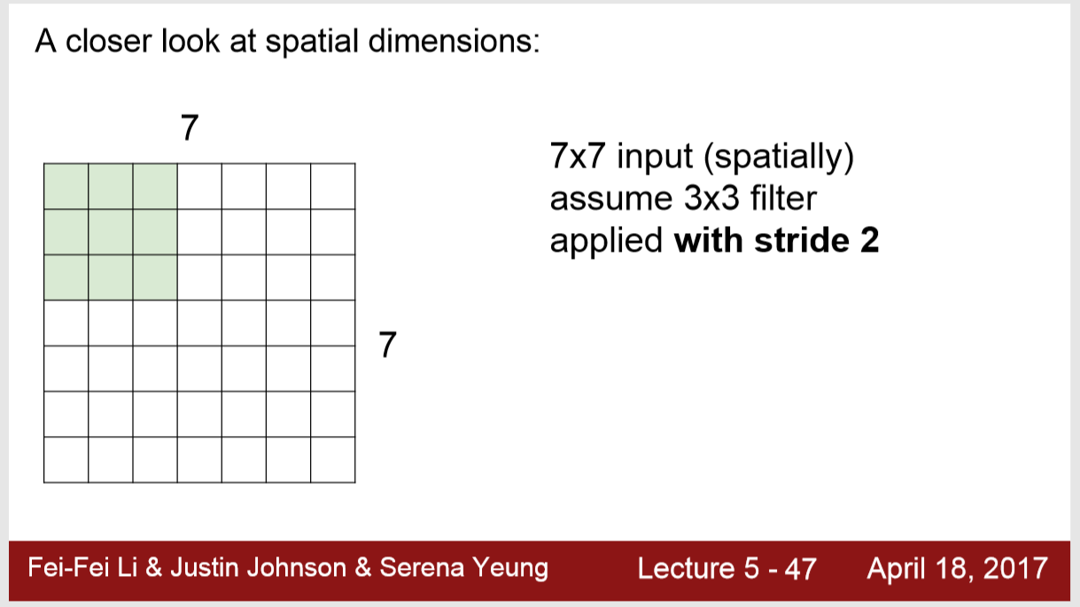 stride가 2로 변경되었을 때 어떻게 되는지 다음 그림을 보겠습니다.