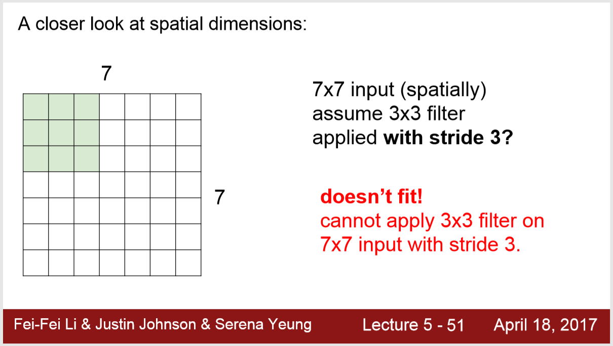 그래서 N이 7일때 F가 3이면 stride가 1이면 5가 나왔던 것이ㅗ 2이면 3이 나왔던 것입니다.