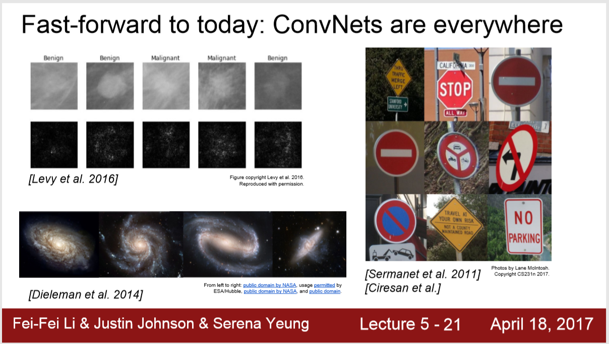 위 그림에서와 같이 관절영역,은하계,표지판 탐지 등 이런 것들에 전부 CNN이 사용되고 있습니다.