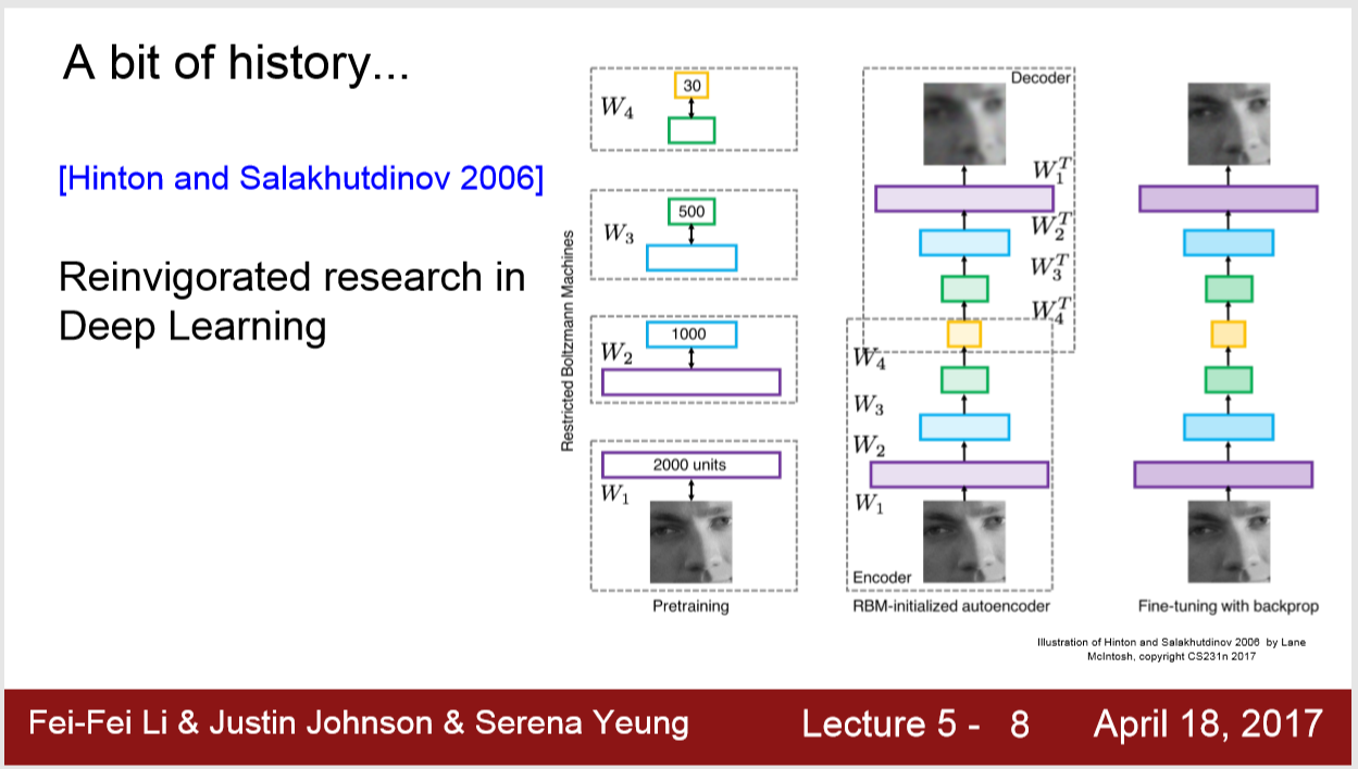 2006년에는 hinton 교수님께서 weight를 잘 줄일 수 있는 방법 ( RBM-initialized ) 과 fine tuning 사용하는 방법에 대해서 알립니다.