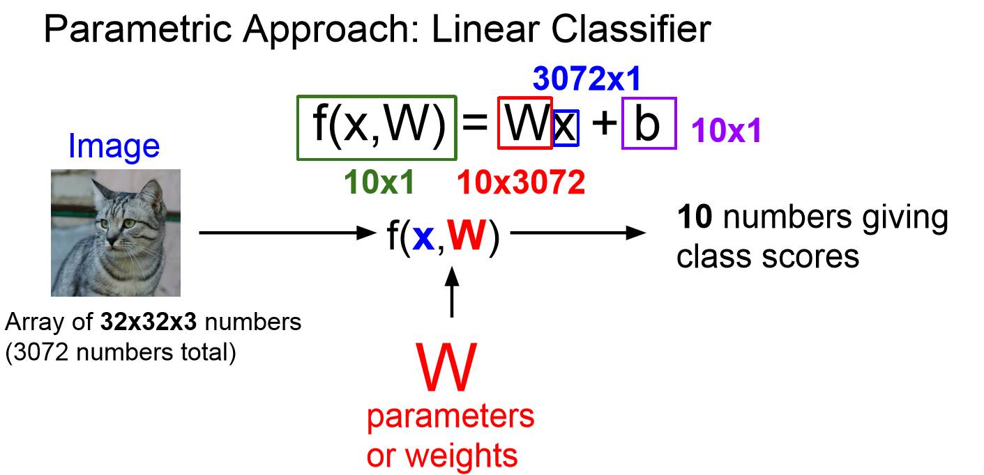 위 과정이 Linear Classification 의 Parametic (매개 변수적) 접근 방식입니다.