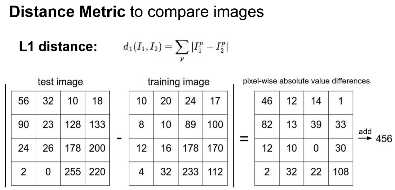즉, 두 이미지의 거리를 구하는 것이 L1 distance라고 할 수 있겠습니다.