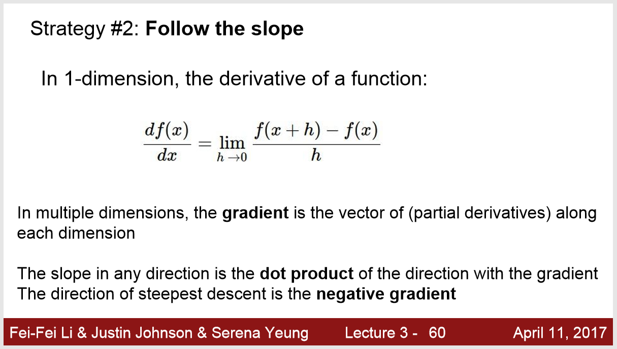 미분을 사용하여서 analytic gradient ( 해석적 방법 ) 을 사용하면 됩니다!!