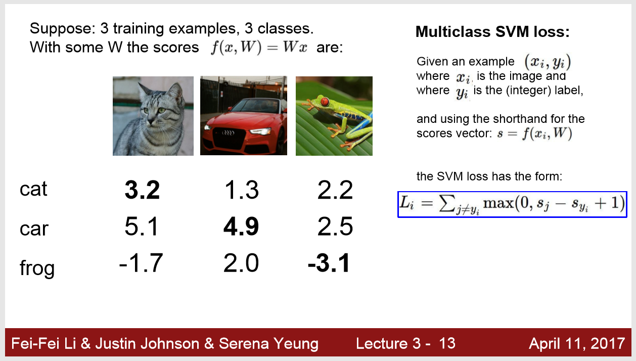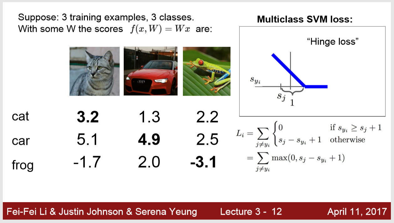 위와 같은 개념으로 위 사진은 서포트 벡터 머신 ( SVM ) loss입니다.