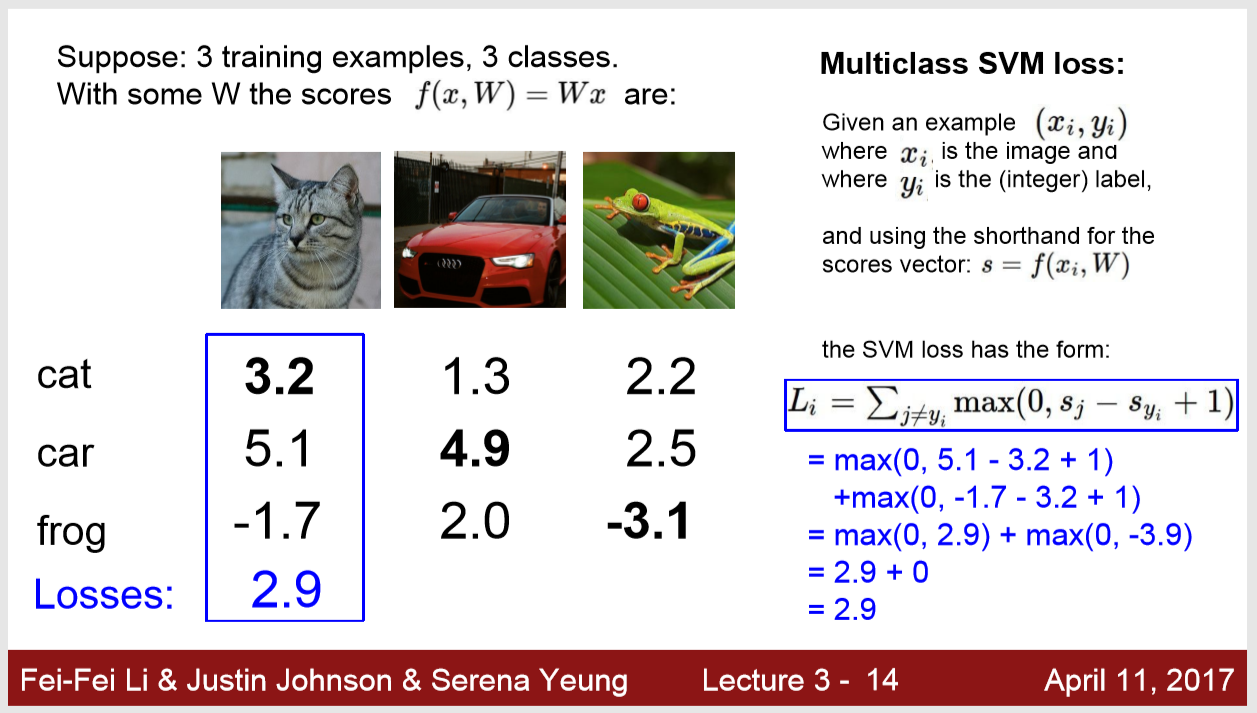 위에서 loss를 구해준 것들을 더 해 보면 2.9 + 0이 되어서 2.9가 됩니다.