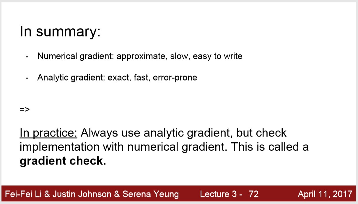 analytic gradient는 정확하고 빠르지만 에러가 많이 나올 가능성이 있다는 것입니다.